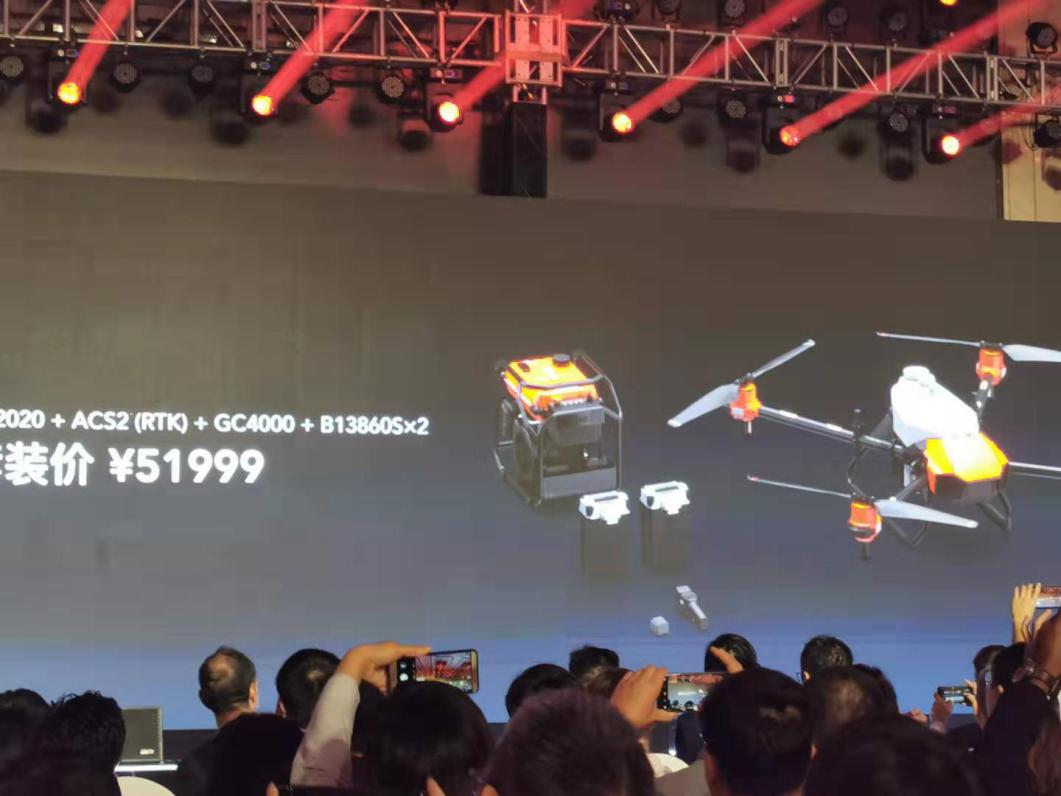 最后,彭斌向现场观众公开了新款植保机套装价格51999元,这个价格顿时让现场兴奋不已。相比几年前,很多用户花这个价格只能购买一台裸机,然而现在这个价格用户可以得到了整套设备,并且20L的大载荷以及快速的作业效率才是让用户欣喜不已的理由。
