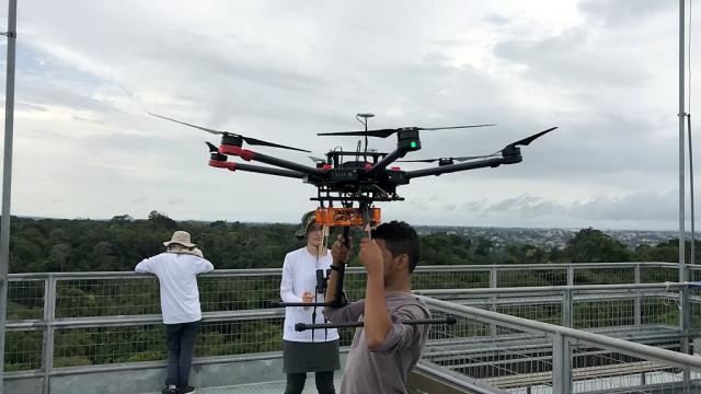 2019年10月25日讯(具体拍摄时间不详),哈佛大学的一个团队正在使用好莱坞大片中使用的无人机技术研究亚马逊雨林如何应对气候变化。这些无人机曾被用于拍摄《007:大破天幕杀机》和《华尔街之狼》等好莱坞大片,如今经过特别改造,可以承受世界上最大热带雨林的高温和潮湿,使研究人员能够监测以前无法到达的裂缝,并评估森林对气候变化、砍伐和火灾的反应。(图源自视觉中国)
