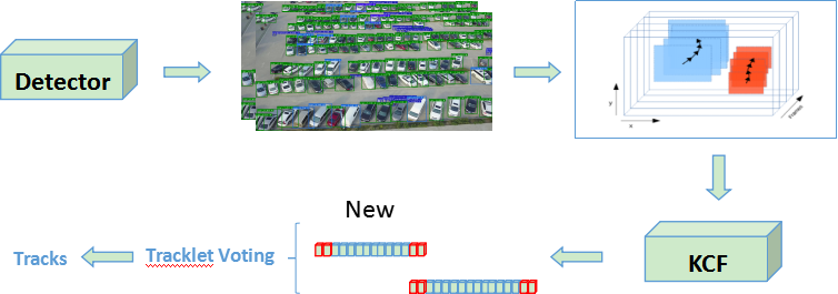 跟踪算法:IOU tracker + KCF + tracklet vote