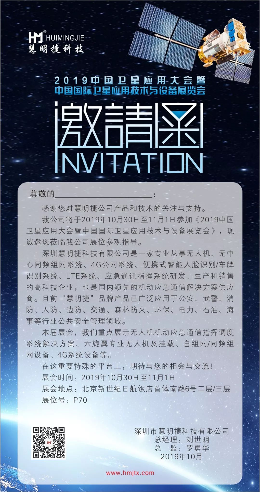慧明捷诚邀您参加2019中国卫星应用大会暨、中国国际卫星应用技术与设备展览会