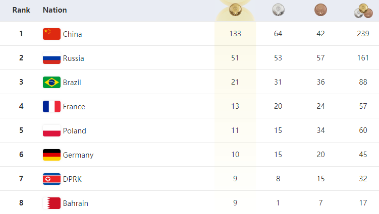 拳击、跆拳道和摔跤则分别有5金、4金和3金入账