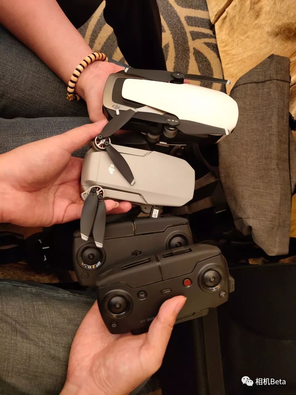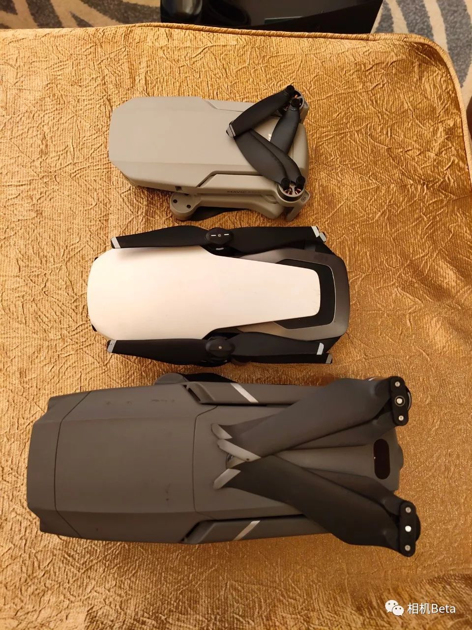 真机实物上手,以及大疆Mavic系列各代机型体积对比: