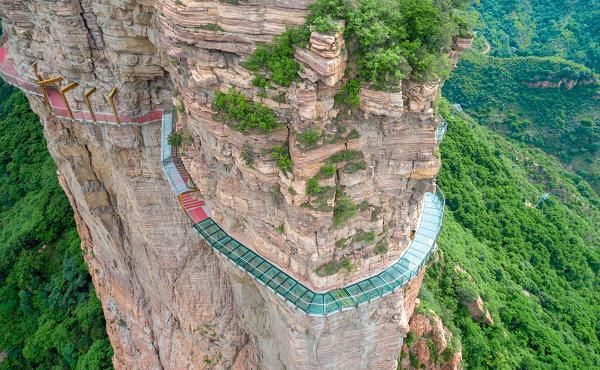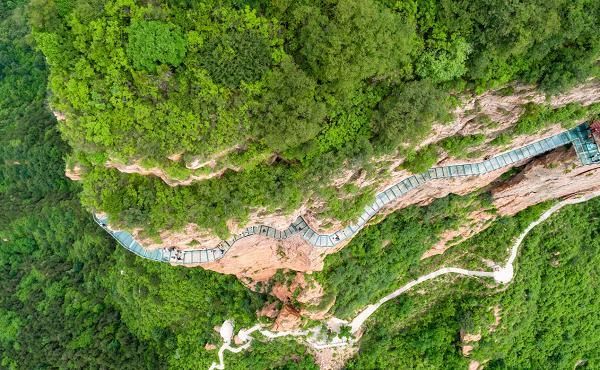 此次行程,想重点说一下我印象比较深刻的点,和我的航拍,其他游记攻略,别人的游记里都写得比我详细。首先是东太行的玻璃栈道,这个作为河北的网红打卡点,一直以“惊险”出名,踩在上面,会有碎裂玻璃的声音,非常惊险刺激的感觉,无人机航拍的俯瞰视觉,与亲自脚踏在上面的感觉,却又完全不一样。我踏在上面,看着这里像是鬼斧神工一样,与山体,绿树融为一体,壮丽而又秀美。