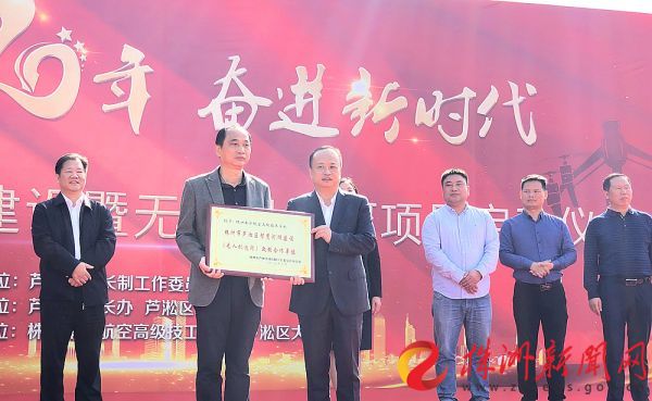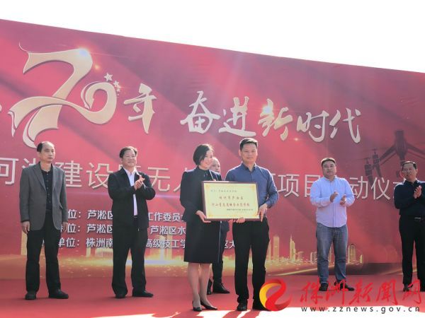 启动仪式上,株洲南方航空高级技工学校被授予“株洲市芦淞区智慧河湖建设(无人机巡河)政校合作单位”。(赖杰琦 摄)