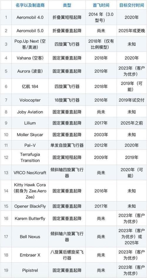 图 目前正在开发进程中的飞行汽车 (数据来源:《麻省理工科技评论》)