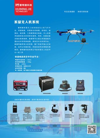 在系留无人机解决方案方面,慧明捷系留无人机能够进行24小时尝试滞空,在应急救援中,可作为一个高效快速响应的空中作业平台,完成通信中继、临时聚集地疏导照明、空中临时布控等任务。