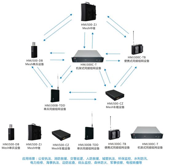 慧明捷MESH/自组网系统采用无中心、分布式网络架构,具有多跳中继,动态路由,抗毁性强的特点。所有节点能够在快速移动、遮蔽非视距等复杂应用场景下,实现多路语音、数据及视频等多媒体信息的实时交互,可以广泛应用于公安执法、消防救援、交警巡逻、人防救援、城管执法、环保监控等多种场景。