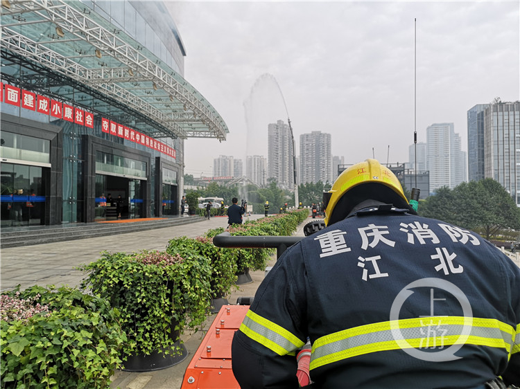 4日上午,江北区行政服务中心大楼五楼处突然冒起滚滚浓烟,随即,楼内人员开始疏散,消防车迅速赶到,消防指战员在无人机和消防机器人的配合下,成功控制了火情。