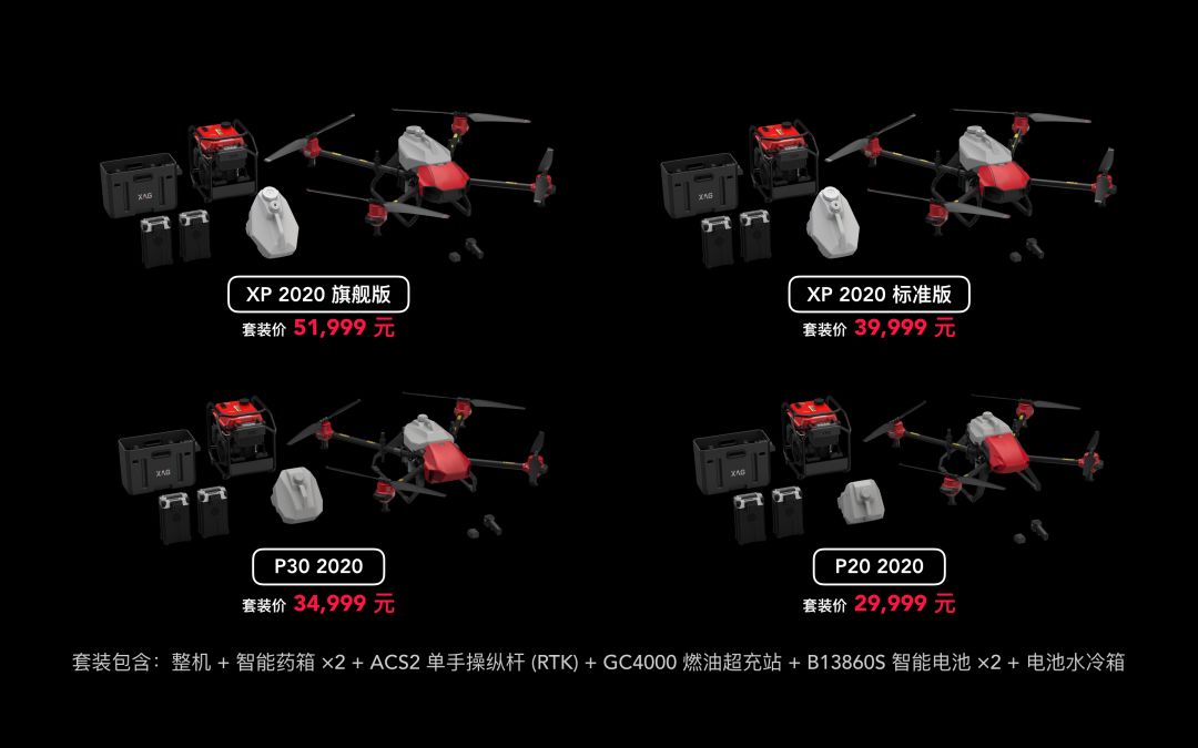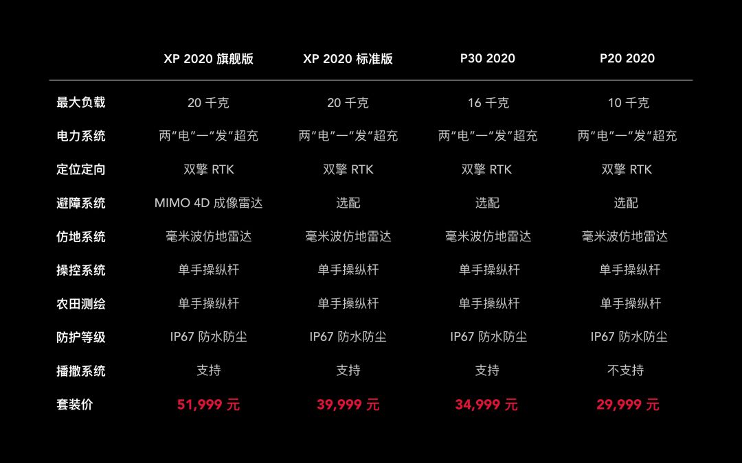价格上,XP 2020 款农业无人机标准版到手即用价为 39999 元,P30 2020 套装价为 34999 元,P20 2020 款套装价为 29999 元,大大降低了购置门槛,也为更多农业生产者打开智慧农业的大门。