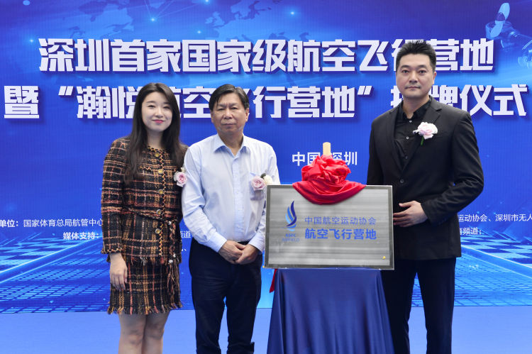 国家体育总局航管中心党委书记任洪国、瀚悦(深圳)科技体育有限公司执行董事刘帅扉、瀚悦航空飞行营地首席执行官王江鹤共同为营地揭牌。