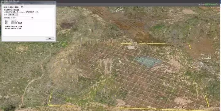 在无人机进行航空摄影获取航测数据的基础上,运用Smart 3D软件进行空三加密等处理生成实景3D模型,进而可以在Smart 3D软件上选定任意位置,运用绘制轮廓与设置标高、坡度的方式自行绘制地坪草图,推演划定其位置的土方工程量,如图