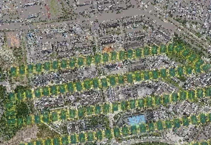 当多镜头倾斜摄影无人机飞行到适当高度以后,机载的倾斜摄影系统从多个视角向地面航摄,航拍路线采用重叠率60~80%(由地面高度决定)沿某一方向来回往返,呈带状按次序逐步覆盖全部场地,实现对地形逻辑有序的全覆盖航摄。