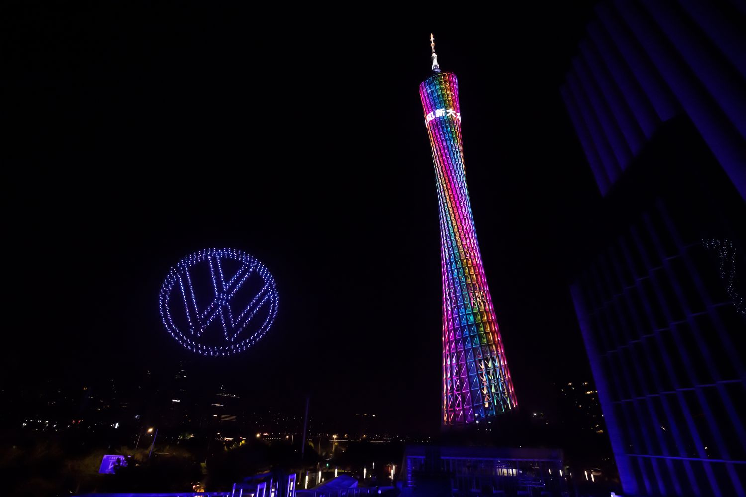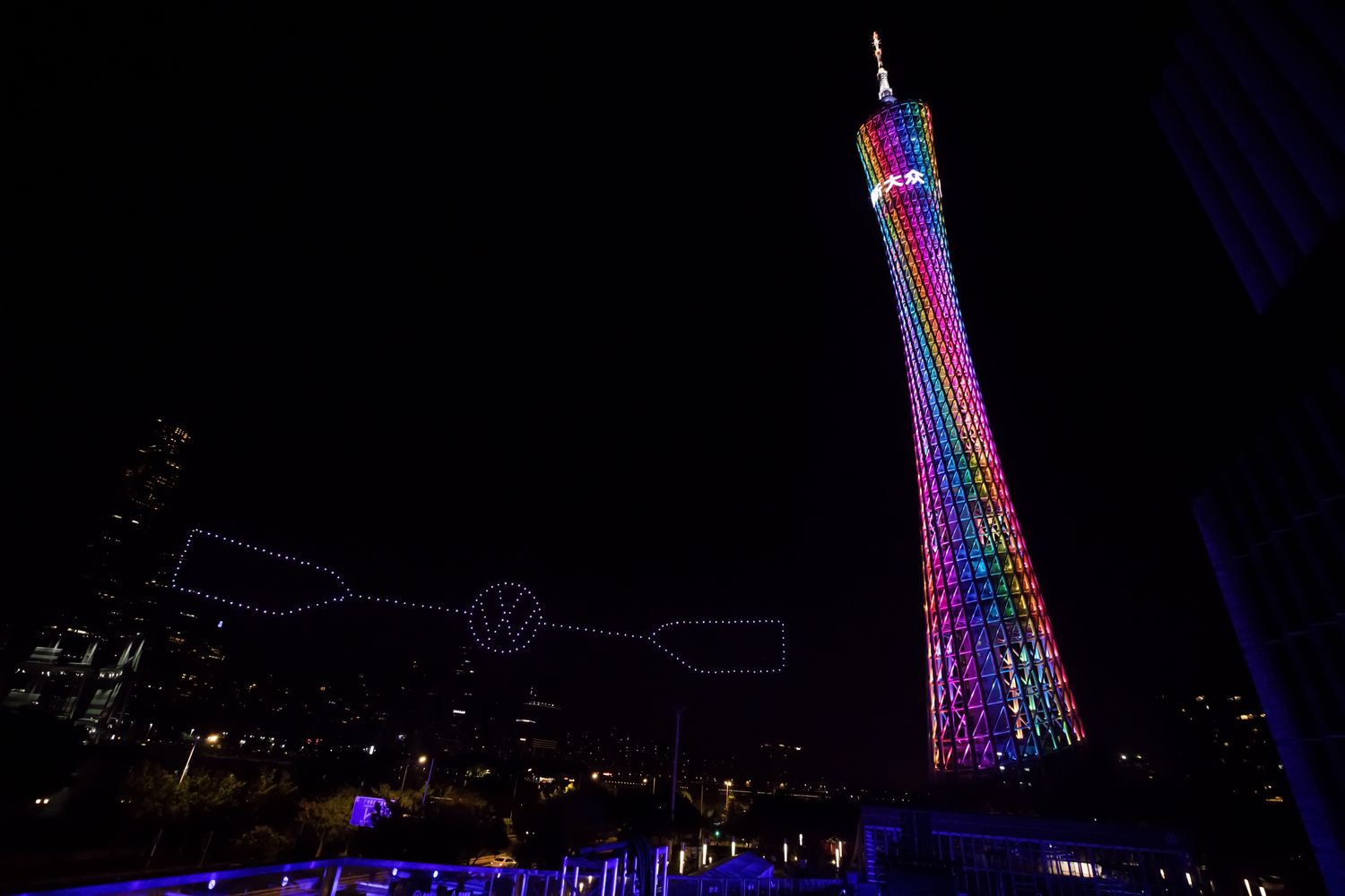 光线是新大众的核心元素,它既是未来大众汽车车型设计的重要符号,也是品牌传播过程中的重要表现形式,此次无人机表演充分诠释了这一点。在广州塔这座高达600米的中国第一高广播塔旁,无人机率先组合出“你好,中国!”的字样,以亲切的问候表达大众汽车对中国用户的诚挚感谢,以及对中国市场的持续关注。