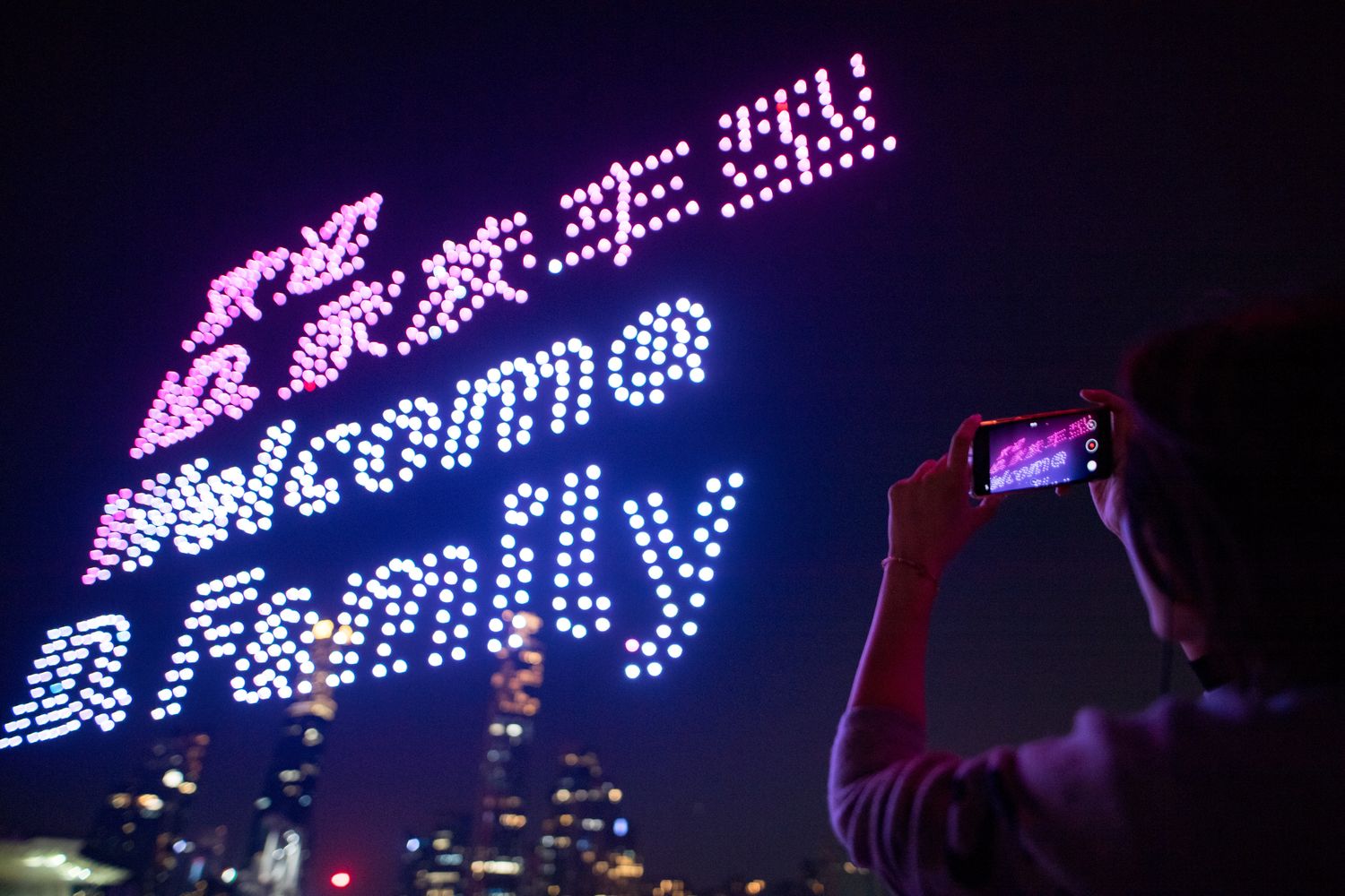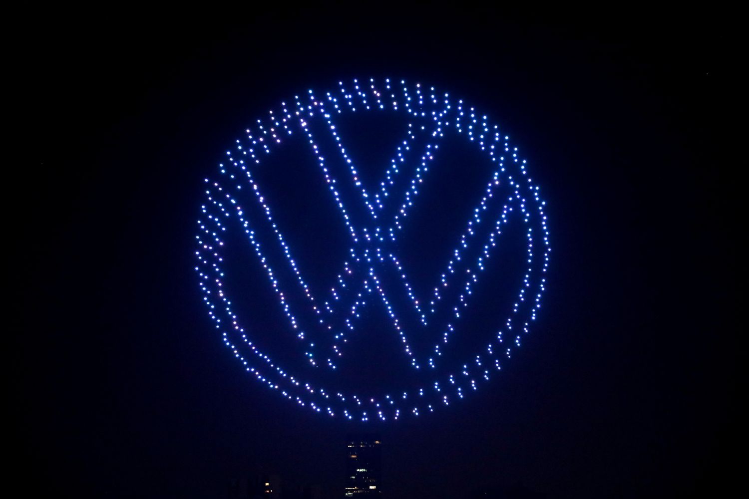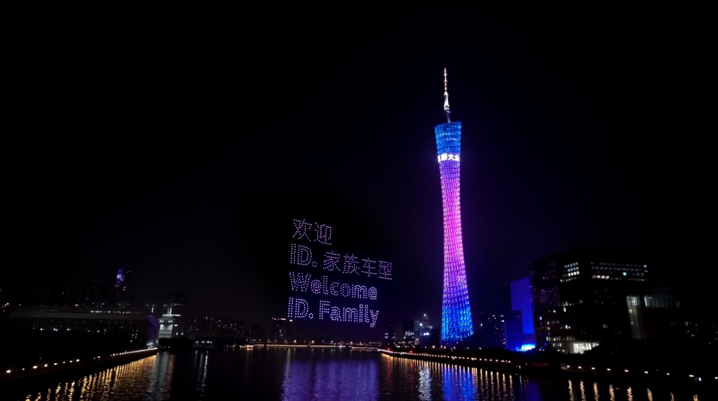 随后,无人机变换队形,构成全新纯电动ID.家族的标志性前脸设计,并勾勒出“欢迎ID.家族车型”的文字以及纯电动ID.3的车型轮廓,宣告以ID.3为代表的纯电动ID.家族即将来到中国。此外,无人机还在夜空中写下“遇见新大众”的活动主题,并组成直径108米的大众汽车全新标识,与广州塔交相辉映,充分展示大众汽车品牌的崭新面貌。