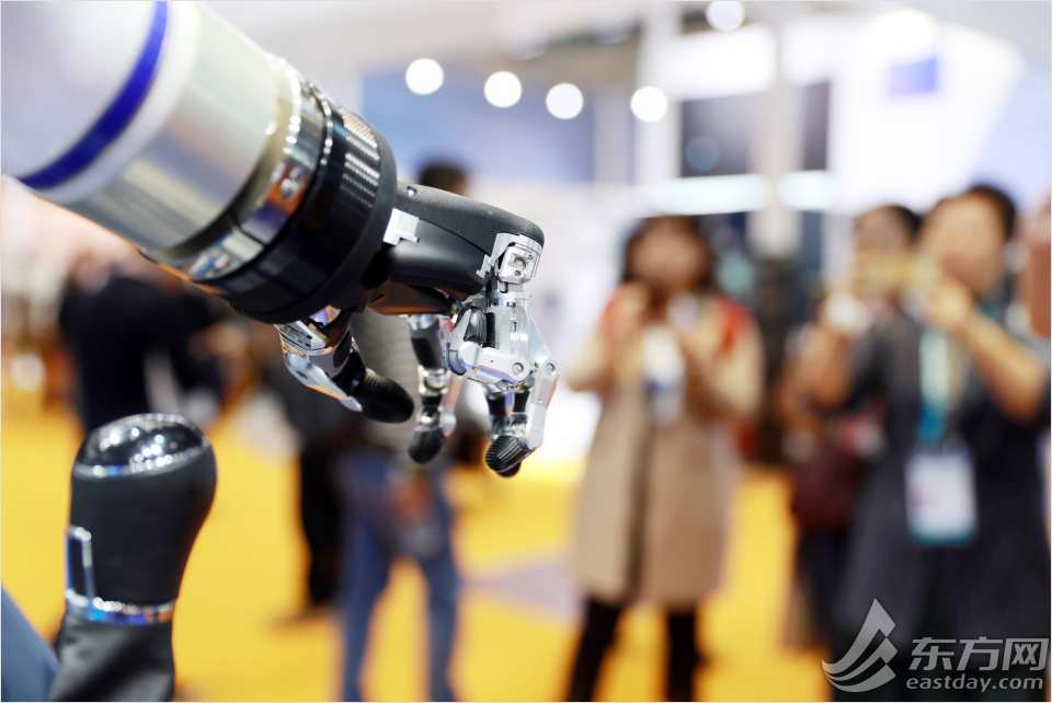 在第二届中国国际进口博览会上,装备展区由于集结了众多重磅展品而备受关注,其中,3.1馆汇聚了材料加工及成型装备、智能制造装备、能源技术装备、集成电路等展品。图为仿人五指手,它既可以模拟驾驶,又可以猜拳互动,内部有9个驱动电机控制20个关节,可以完成人手90%的动作。