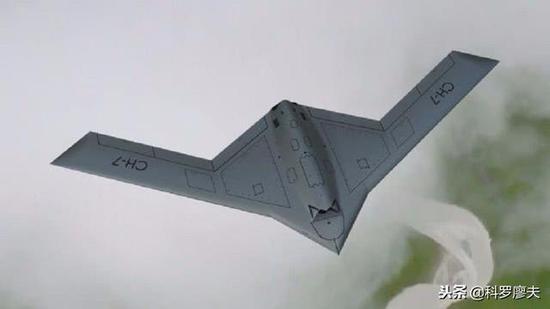 我国彩虹七型(CH-7)无人机是一型高空、亚音速、隐身、远航程的无人侦察打击系统,能在危险环境中执行持续侦察、警戒探测、防空压制、作战支援、发射或是引导其它武器对于关键目标发动打击等作战任务。彩虹-7无人机是师出名门的后起之秀,有很多成熟的尖端特长点。