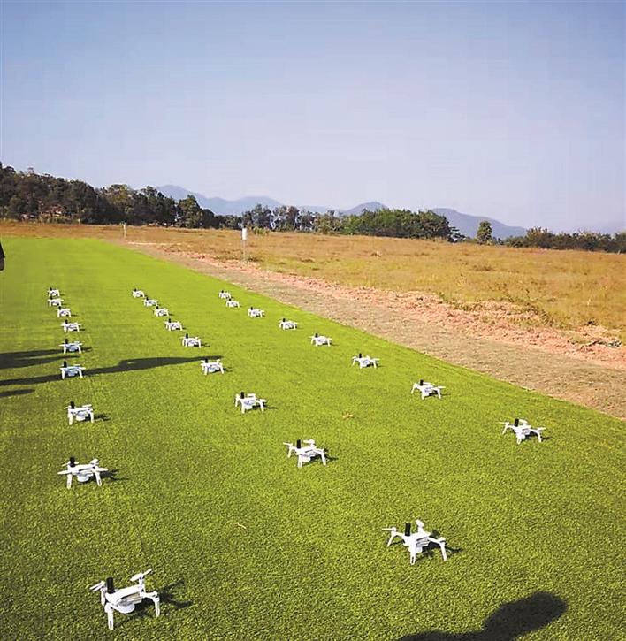 ◀测试现场准备起飞的无人机