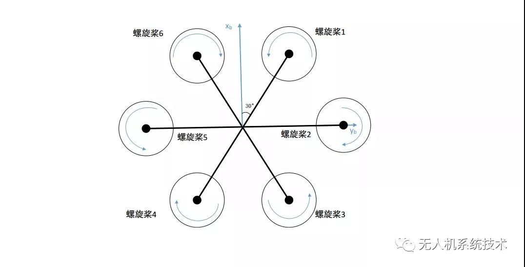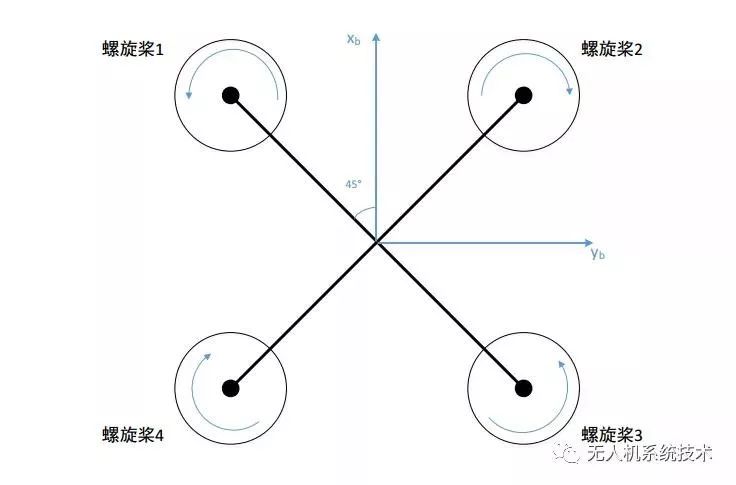 今天我们以“X”型四旋翼和“X”型六旋翼为例说明控制律虚拟控制输出到各电机转速之间的映射关系。