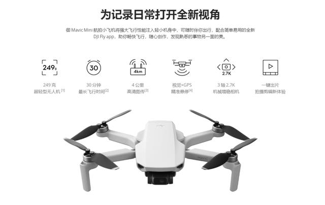 要说无人家哪家强,还得看国产的大疆。大疆发布了一款全新的小型无人机,那就是御 MAVIC MINI。主打卖点就是重量轻、体积小,号称每个人都能飞,售价为 2699 元。