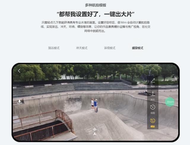 同时在软件易用性方面,DJI Fly app 可以帮助用户学习操控无人机,并且可以用模板一键生成视频,非常方便。