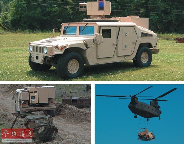 美军同级别的武器为美陆军的“宙斯”(ZEUS)激光扫雷武器系统,由一辆悍马和布置在车顶的10千瓦级二极管激发固态激光器组成,发射的激光束可在300米内提前引爆地雷或爆炸物,已于2003年在阿富汗投入实战,可由CH-47直升机吊运,缺点是射程过近。