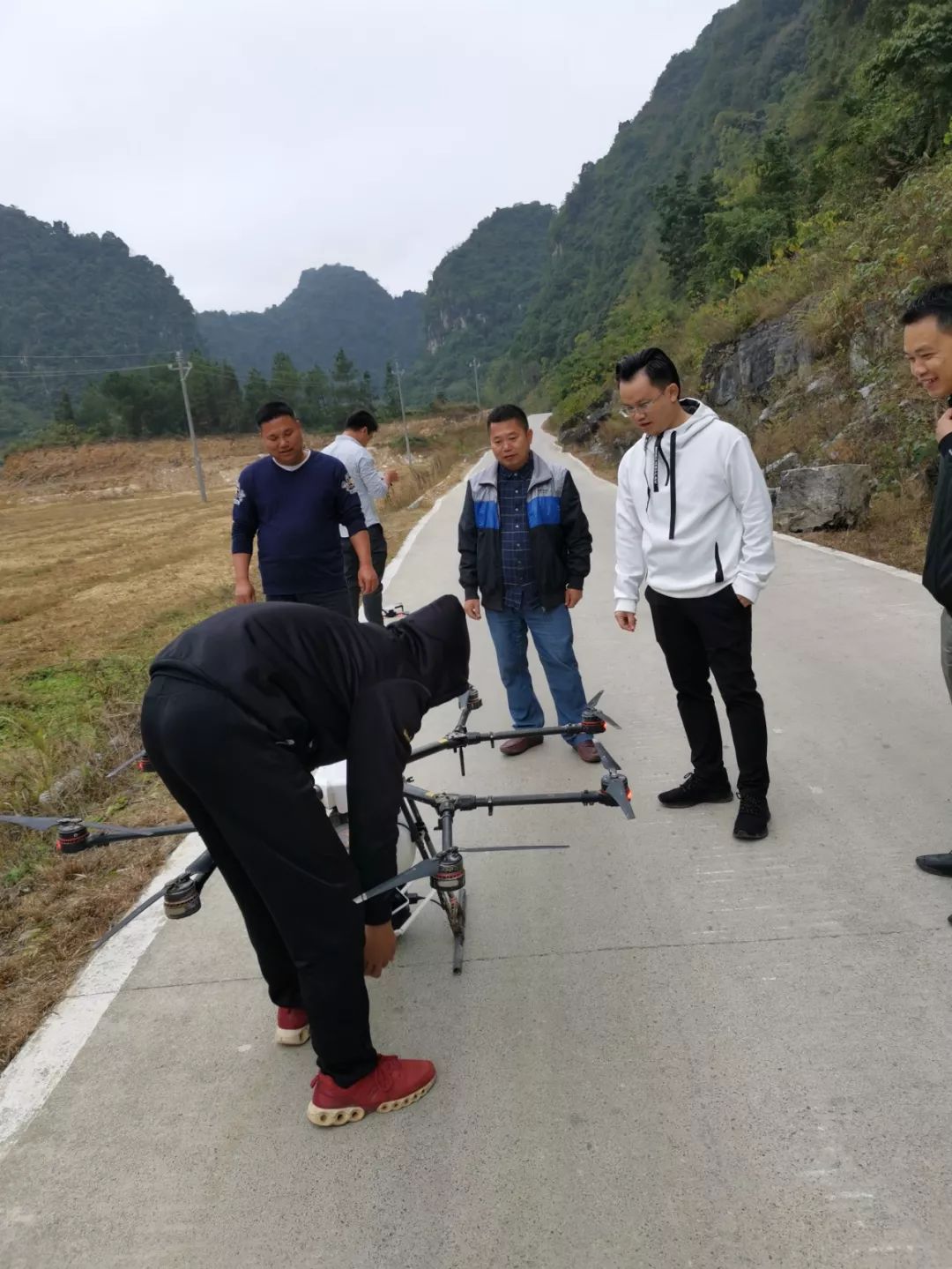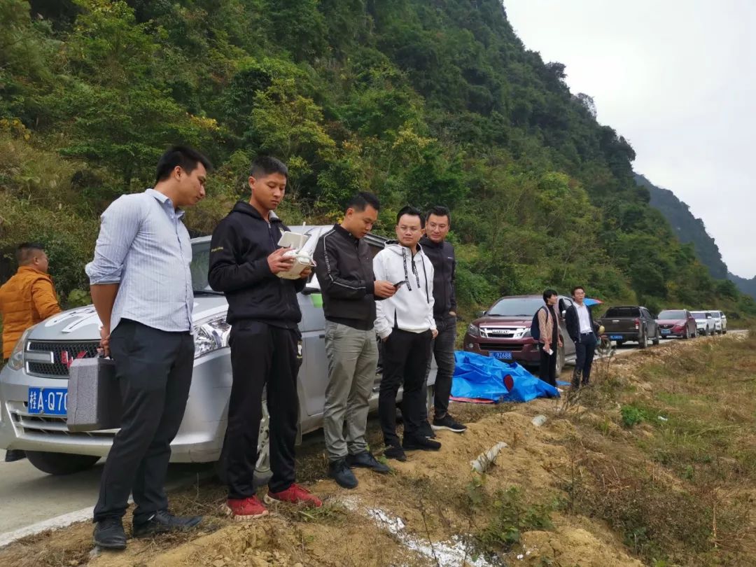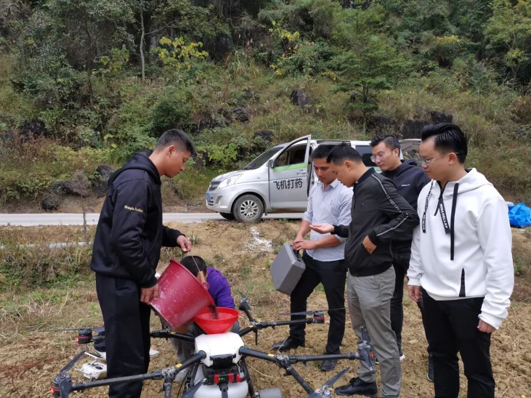 11月16上午10时许,在田阳县巴某村18度巴某凉泉度假村油菜花基地的田间,由田阳县青年创业联盟会员单位田阳县茂林林业开发有限公司组织开展的无人机播种将在这里进行1000亩油菜花的播种作业。