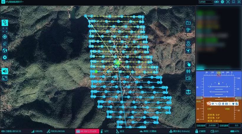 iFly智能航测助手软件联网打开后会自动把高程数据导入到软件目录下,其高程精度为30m。右下角显示经纬度及高程信息。02