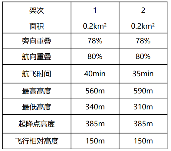备注:该测区一共飞行2个架次,两个架次在同一地点起降