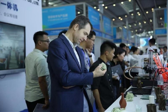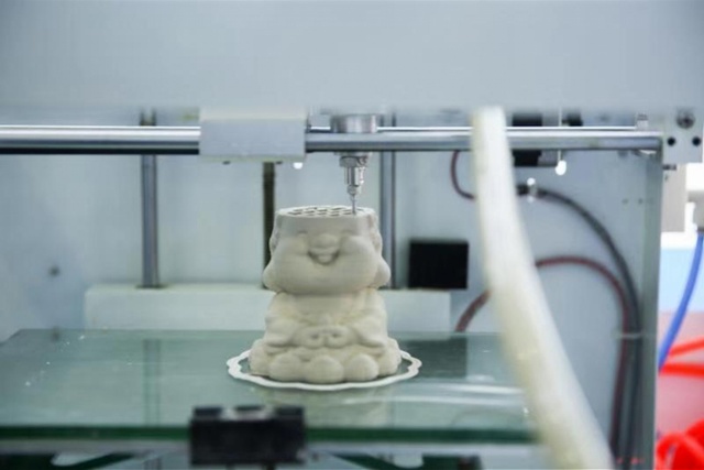 高新科技与传统艺术相遇,会碰撞出什么样的火花?在 “学生创客”区域,运用现代先进的激光科技将传统的纸雕文化通过新的载体呈现的“创意激光3D光影纸雕灯”,焕发着无限光彩;而通过3D打印制造的陶瓷精细玲珑,成为展会上国际友人爱不释手的艺术品。当人们惊叹于传统艺术品的如何成型时,作为“3D打印助力陶瓷工艺品智能制造”项目的负责人、信息学院学生陈宏铎介绍道,陶瓷制品作为文化创意产品、艺术品中的典型代表需求量越来越大,传统雕塑一天成型,但如果运用了3D打印技术,陶瓷可一小时成型。除了操作简单、速度快、精度高等优点外,该项技术还可实现产品外形自定义设计,不仅能够完美的解决传统陶艺的痛点、缓解陶瓷制品的市场需求,还能拓展陶瓷制品的艺术设计水平,实现复杂陶瓷产品的“智能”制造,赋予陶瓷艺术品数字化、网络化、精细化、个性化的特点。
