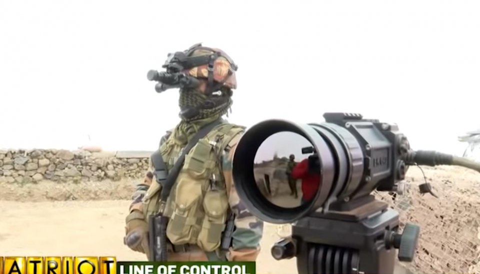 除了侦察仪之外,印军哨所还单独配有一部热像仪,不过它不是用于直接观测的,而是起遥控监视的作用。印军将其布放到哨所外的敏感方向,然后通过线缆将它的画面传输到哨所内的笔记本电脑上,这样就不用外出了,减少了危险性。另外,还可见部分印军士兵也配备了单兵夜视仪,主要是巴拉特公司山寨的AN/PVS-7双目单物微光夜视仪,其使用需要星光和月光辅助,夜视效果一般。根据之前的编组展示可知,印军的每个战斗小组配一部。