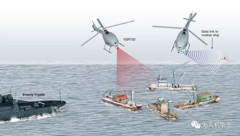 凭借先进自动驾驶系统和工程技术方面的丰富经验,空客直升机公司为法国海军提供了全新作战能力。VSR700最大起飞重量700千克,最大飞行速度185千米/时,机长6.2米,机高2.28米,主旋翼直径7.2米,最高升限6000米,可搭载全尺寸光电红外传感器、雷达等多任务载荷飞行8小时,并能随同直升机一起在海军舰船甲板的狭小空间起降。从任务载荷能力、产品全寿命周期和运营成本方面看,VSR700是海军作战装备的最佳机型。