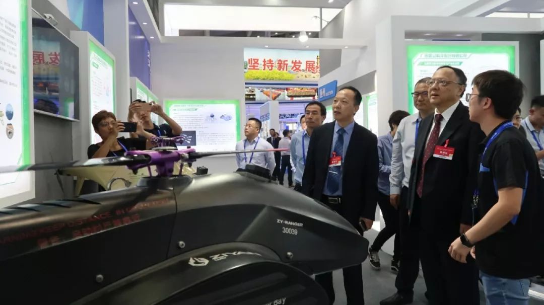 珠海市副市长闫武(左2)、珠海市科技创新局局长(左1)一行也亲临紫燕展台了解紫燕UAV目前在城市建设各个领域中发挥的作用。
