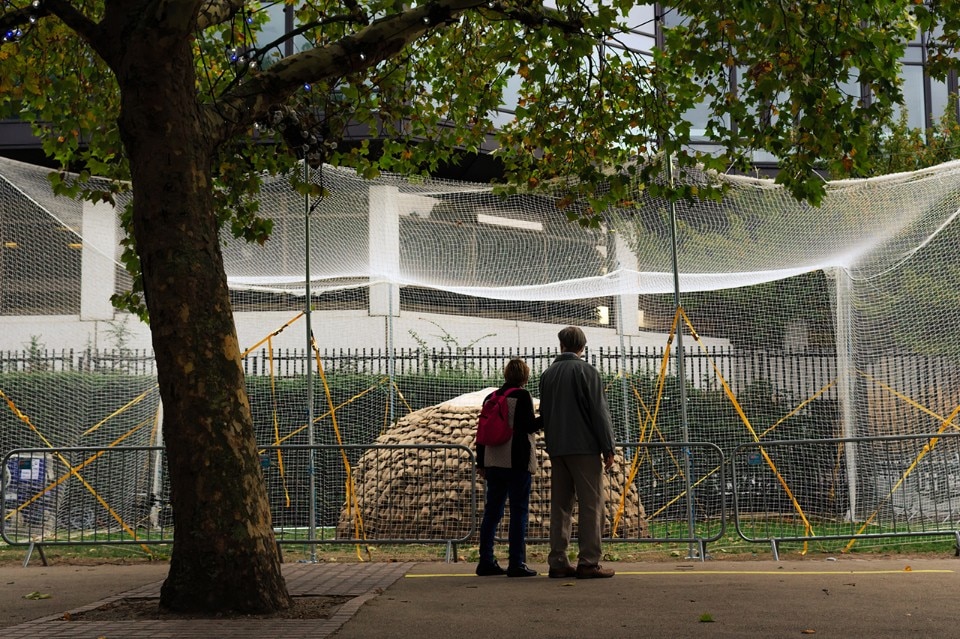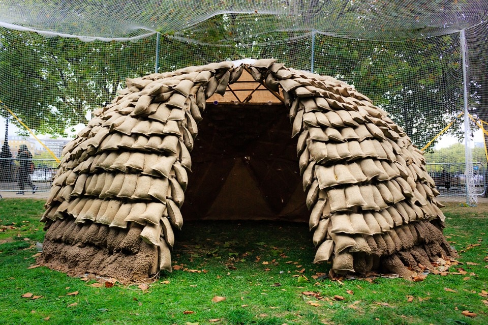 我们在那里使用的测地线框架要坚固得多,并且圆顶的顶部仅覆盖有织物和透明塑料板,因此不要在顶部施加重量。最终,我们使入口小得多,并插入了两个杆子,而不是拥有巨大的菱形入口。有效!三天大雨,房屋结构没有被覆盖就抵抗了。实际上,作为我们在位于南岸的伦敦设计节期间的项目,其最具挑战性的方面是必须应对该市的反恐措施!此外,伦敦不允许飞行无人驾驶飞机,而且航空法律经常更改。我们发现在结构上工作的唯一方法是将其构建在网状体积内。我预制了35个三角形,其中装有许多装满干草的小袋子。然后,我与来自巴塞罗那的地球建筑师Fabio Gatti和来自Westminster的Pete Silver一起参加了仅两天的现场制造阶段。我们还将粘土和石灰混合料染成蓝色,这是我们第一次设法通过无人机喷涂技术获得颜色。无人机喷洒课程的设计适合表演形式,使沿河行走的人可以停下来。他们做到了!设计枢纽总监Will Sorrell曾是一个绝妙的主意,他从一开始就信任该项目。无人机喷洒课程的设计适合表演形式,使沿河行走的人可以停下来。他们做到了!设计枢纽总监Will Sorrell曾是一个绝妙的主意,他从一开始就信任该项目。无人机喷洒课程的设计适合表演形式,使沿河行走的人可以停下来。他们做到了!设计枢纽总监Will Sorrell曾是一个绝妙的主意,他从一开始就信任该项目。