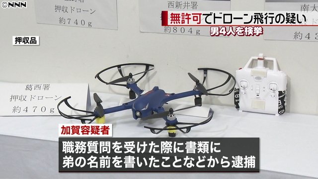 今年5月9日夜间,一名52岁男子加贺隆司在东京江户川区一公园未经许可使用无人机,且做出急速上升和下降的危险动作。路过的行人看到后报了警,警方随后开始调查,并于5月26日将其逮捕,这也是东京警方首次逮捕违禁使用无人机人员。