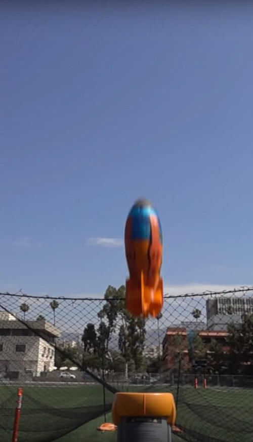 不过,现在美国加州理工学院和美国国家航空航天局喷气推进实验室的这个研发团队,则想出了这种用廉价,低技术的方式发射了四轴飞行器:“棒球投球机。”常用的棒球投球机通常由两个由电动机驱动的装置组成。棒球(或垒球)被挤压在两个动轮之间,然后朝击球手向外投掷。现在,只是用球型侦察无人机取代棒球,就有了一种发射微型飞机的新方法。