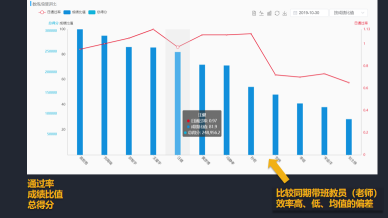 中间验证主要是根据大数据统计,了解个体学员与整体进度的差别,通过完善的数据统计,反馈每个学员的学习情况,不同科目的学习进度。