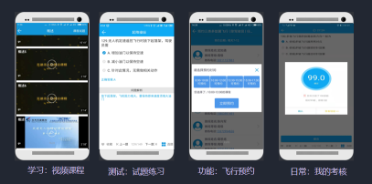 朱亚鹏从前端输入、中间验证、后端输出结果三大方面对天途的“掌上天途APP”进行了介绍。前端输入通俗来说指采集数据。它的主要功能包括学习视频课程、试题练习测试、飞行预约、日常考核四个部分。