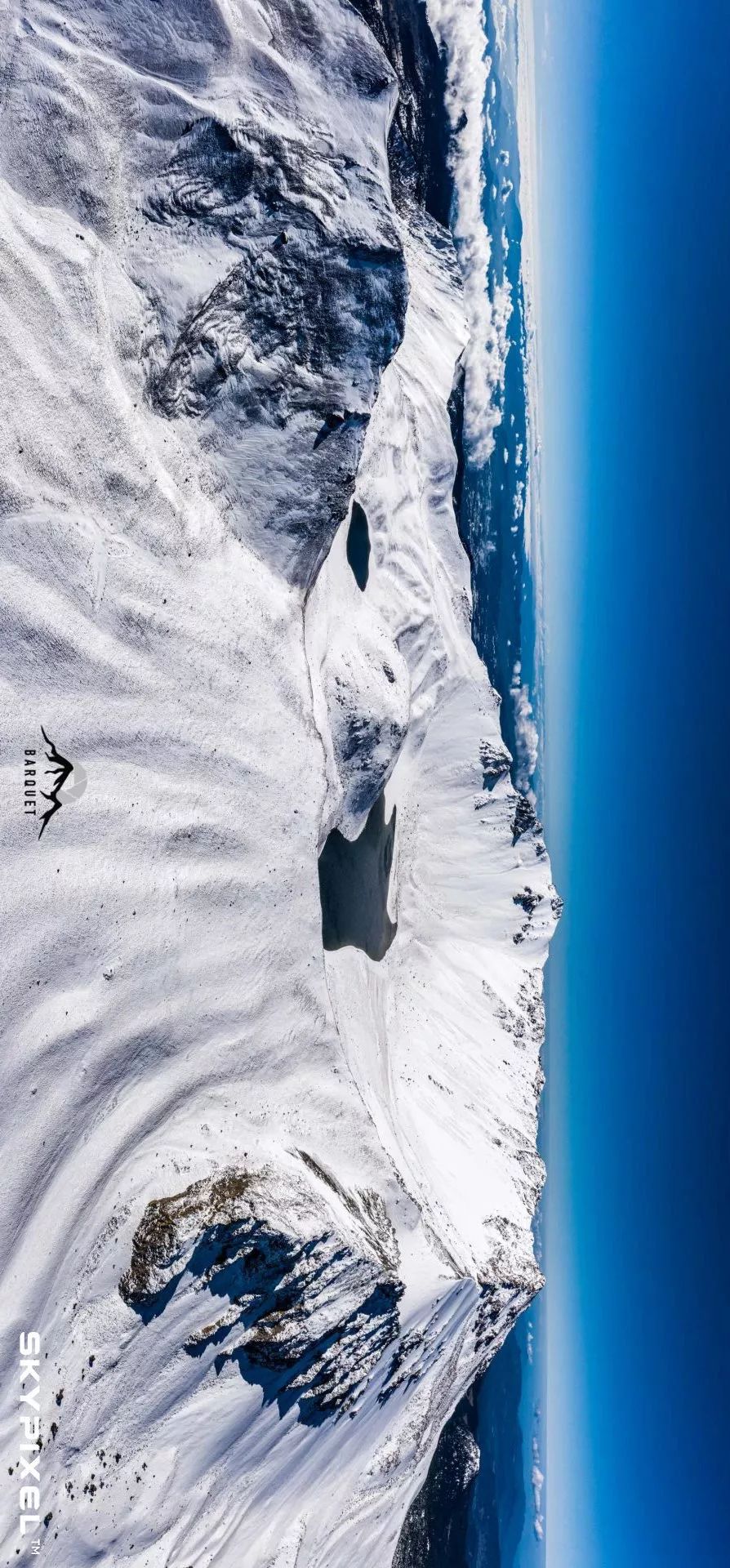 山上,积雪覆盖,峰峰突兀,壁峭坡陡