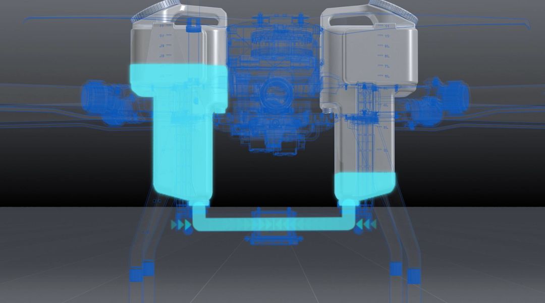 正大航空双药箱设计行业首创自均衡系统。当你插一个药箱的加药的时候药液实现自均衡,两个药箱同时插的是也可以实现自均衡。