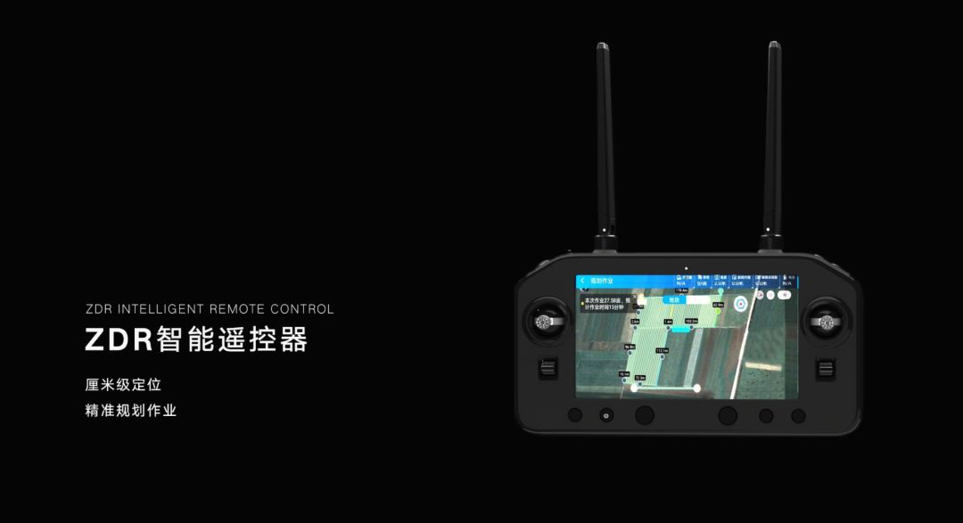 ZDR高亮屏智能遥控器,具备RTK打点功能,可实现厘米级高精度准确定位规划作业。在配合APP时,可以实现植保作业规划更加智能化,给用户带来全新的非凡体验。