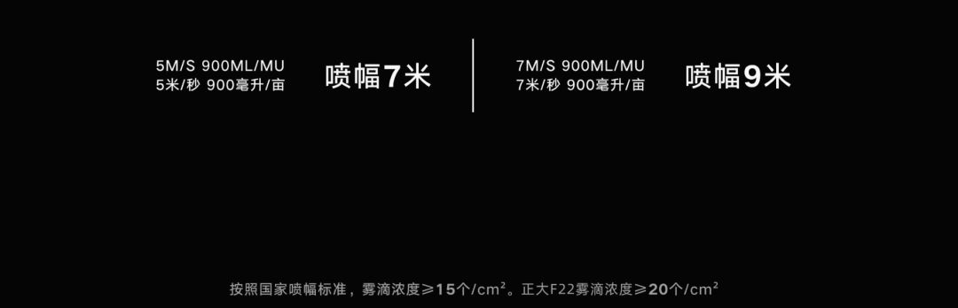 据正大航空实际测试数据得出,5米每秒900毫升的亩用量喷洒的雾滴>20个平方厘米最佳喷幅为7米。7米每秒900毫升的亩用量喷洒的雾滴>20个平方厘米最佳喷幅为9米。