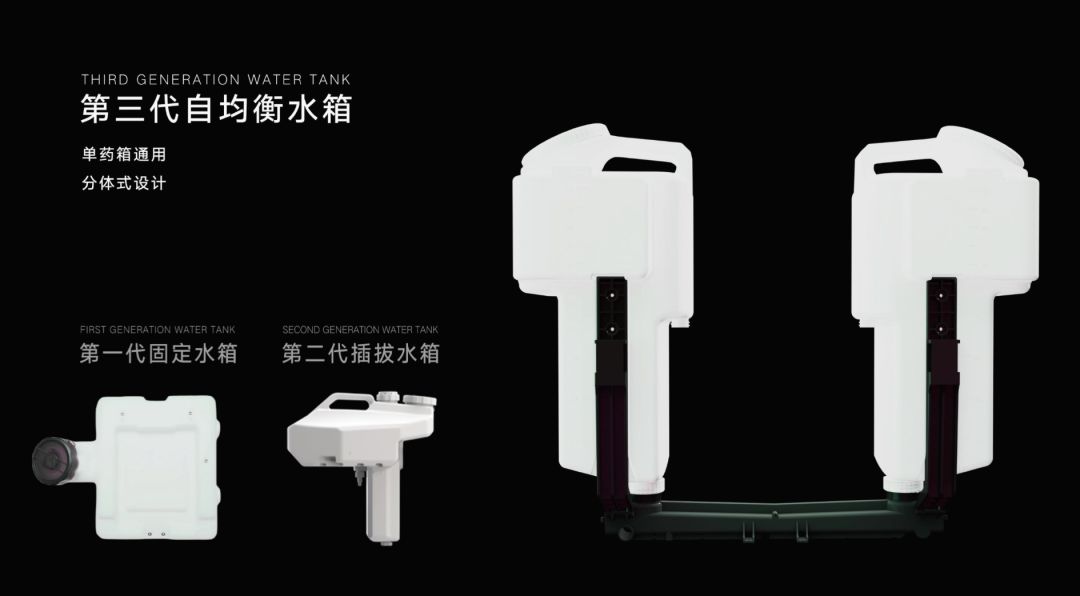2017年市场主流插拔式药箱,比固定式药箱确定提高了效率。当时药箱从10L 做到16L 再到20L。随着药箱越来越大,但是人的受力越来越不均衡。因为在实际作业场景中,一个80公斤的大汉一天作业700亩地,要换药箱28次,行走2000米,这样的体力消耗相当于一个人扛20L的桶装水爬了30层楼高。