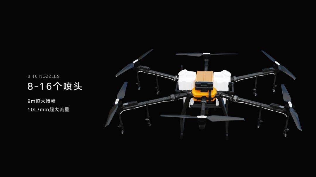 针对新疆棉花脱叶剂作业和南方果树作业。我们可以升级,16个喷头,9米的超大喷幅,10升每分钟的超大流量,避免了改装加喷头的烦恼。