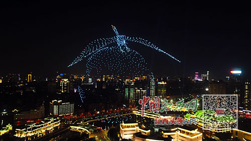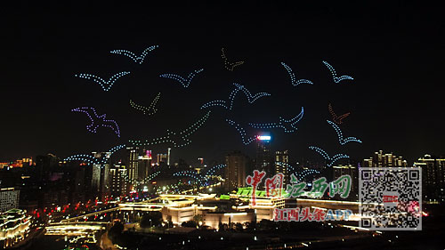 12月5日晚,1100余架无人机在赣江之畔点亮夜空。一开始,无人机升空排列组合成文字“绿水青山就是金山银山”,勾勒出江西地图形状。接下来,无人机变换队形,组成白鹤与地球图案。随后,一部分无人机勾勒出南昌的城市剪影造型,另一部分组成飞鸟,在城市上空展翅翱翔。最后,无人机散开形成许多大大小小的鸟,秀出了万鸟归巢的气势。