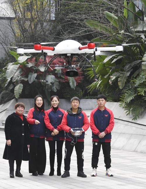 12 月 5 日,鲜敏(左一)与公司技术人员一起测试无人机产品。