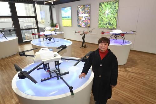12 月 5 日,鲜敏在自己创立的航空科技公司产品展示中心内留影。