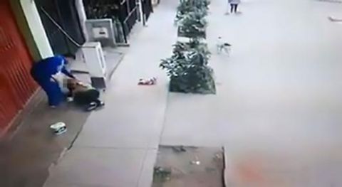视频显示,18岁的枪手克里斯蒂安·托雷斯在大街上跟随着34岁的罗莎·维尔卡,手上似乎是一把手枪,随后他朝罗莎开了一枪。
