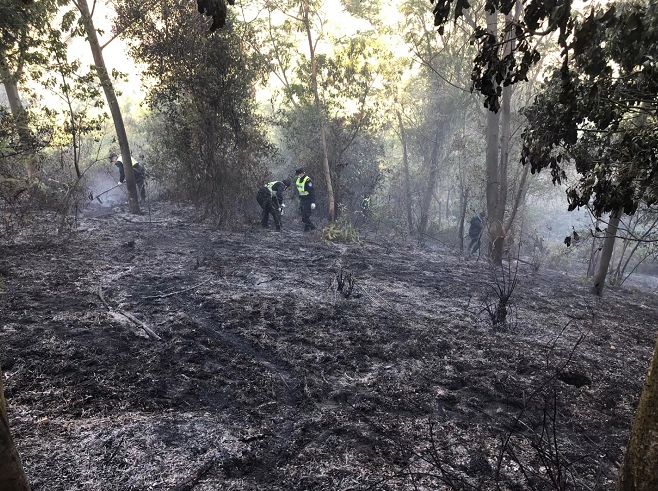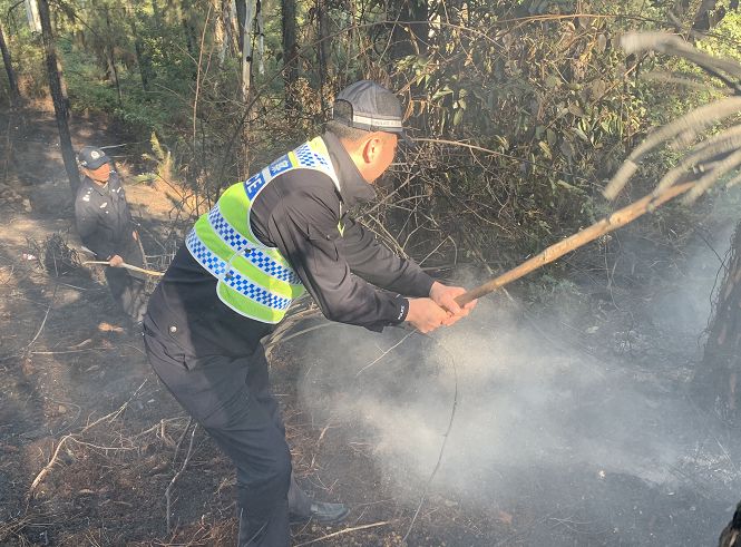 //警辅人员扑灭火星 防止复燃//7日,市公安局从市局机关、各分局(除高明分局)抽调近千名警力赶赴现场,配合清理过火山林,扑灭残余火星,防止死灰复燃。截至8日16时,参加救援的佛山公安警辅力量共协助清理过火山林约1千亩,清除复燃隐患28处。