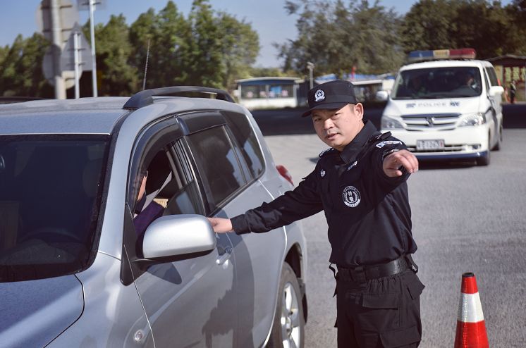特警队员对村庄加强巡逻,防止盗抢案件发生。
