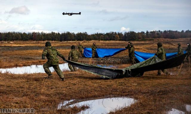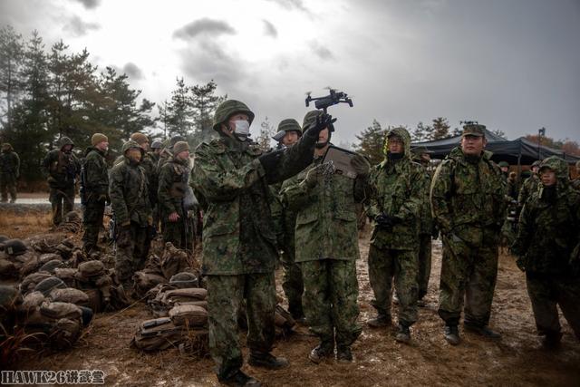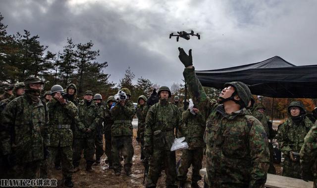 这是一个年度训练演习,名为“林地轻中型部队(ForestLightMiddleArmy)”,演习旨在提高日美步兵部队协同作战能力。这个环节是步兵部队装备的小型无人机,在现场可以看到陆自新装备的四轴无人机,从外形上看,这并非大疆产品,可能是日本自行研制的同类型产品。